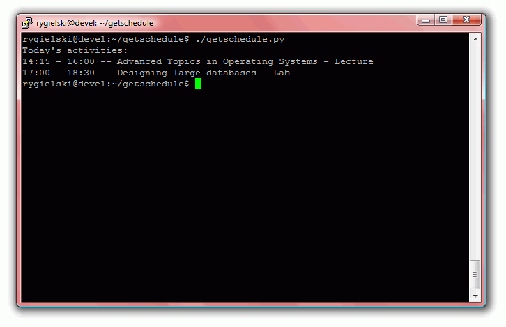 Simple console application. Displays today's activities (tt module). Required Python 2.6 to run (one of many Python OAuth libraries is already included).